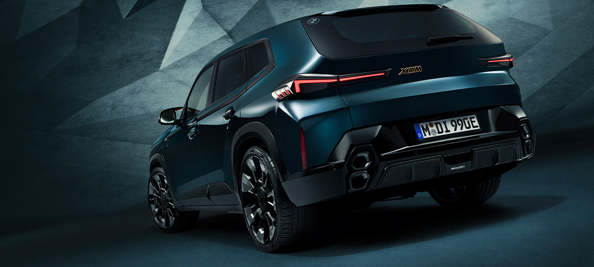 Ţevile de eşapament duble M hexagonale, poziţionate vertical, creează o prezenţă unică în spate, împreună cu accentele aurii ale difuzorului şi cu emblema XM. Cele două embleme BMW gravate cu laser pe partea laterală a geamurilor spate creează o legătură cu ultimul model „M only” – BMW M1. Împreună cu pasajele roţilor, stopurile pe colţ subliniază prezenţa robustă şi ampatamentul generos.